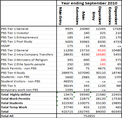 Table 2 Entry clearance visas issued for the year ending September 2010